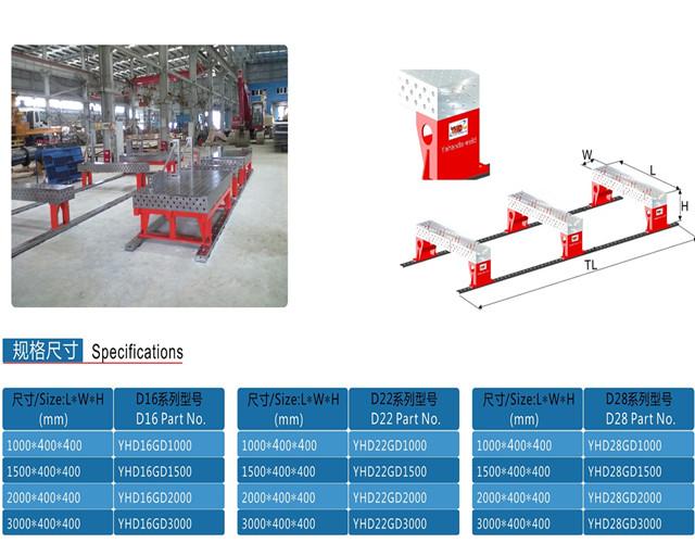 產(chǎn)品簡(jiǎn)介: 三維柔性軌道式 焊接平臺(tái) 產(chǎn)品介紹 D28/D16 三維柔性軌道式平臺(tái)用于較大或 型的鋼結(jié)構(gòu)焊接裝夾,列如:高壓線塔、舞臺(tái)鋼結(jié)構(gòu)件、吊車鋼結(jié)構(gòu)力臂、挖掘機(jī)斗桿及動(dòng)臂、戶外鋼結(jié)構(gòu)廣告架等場(chǎng)合。 D28/D16 三維柔性軌......